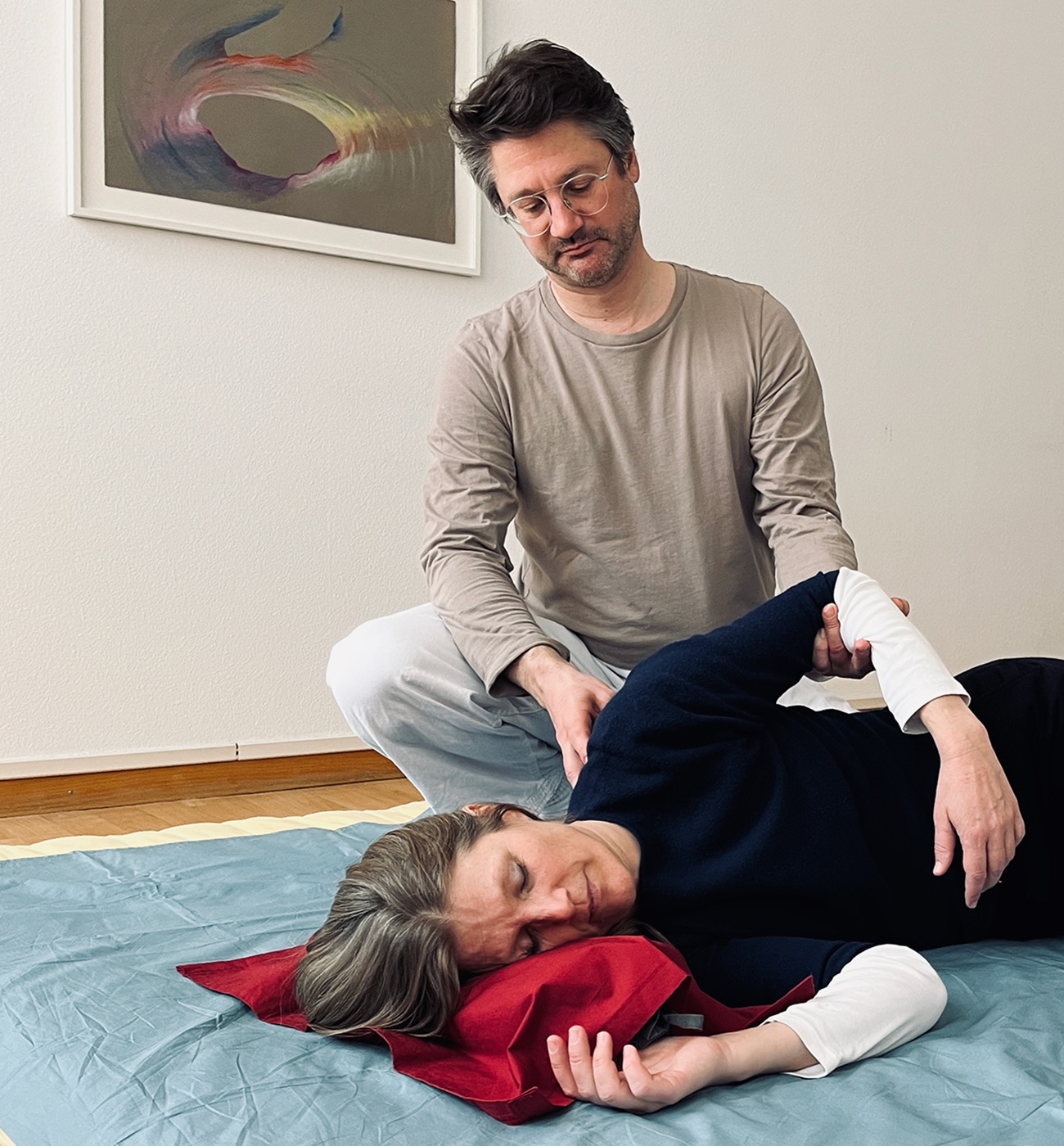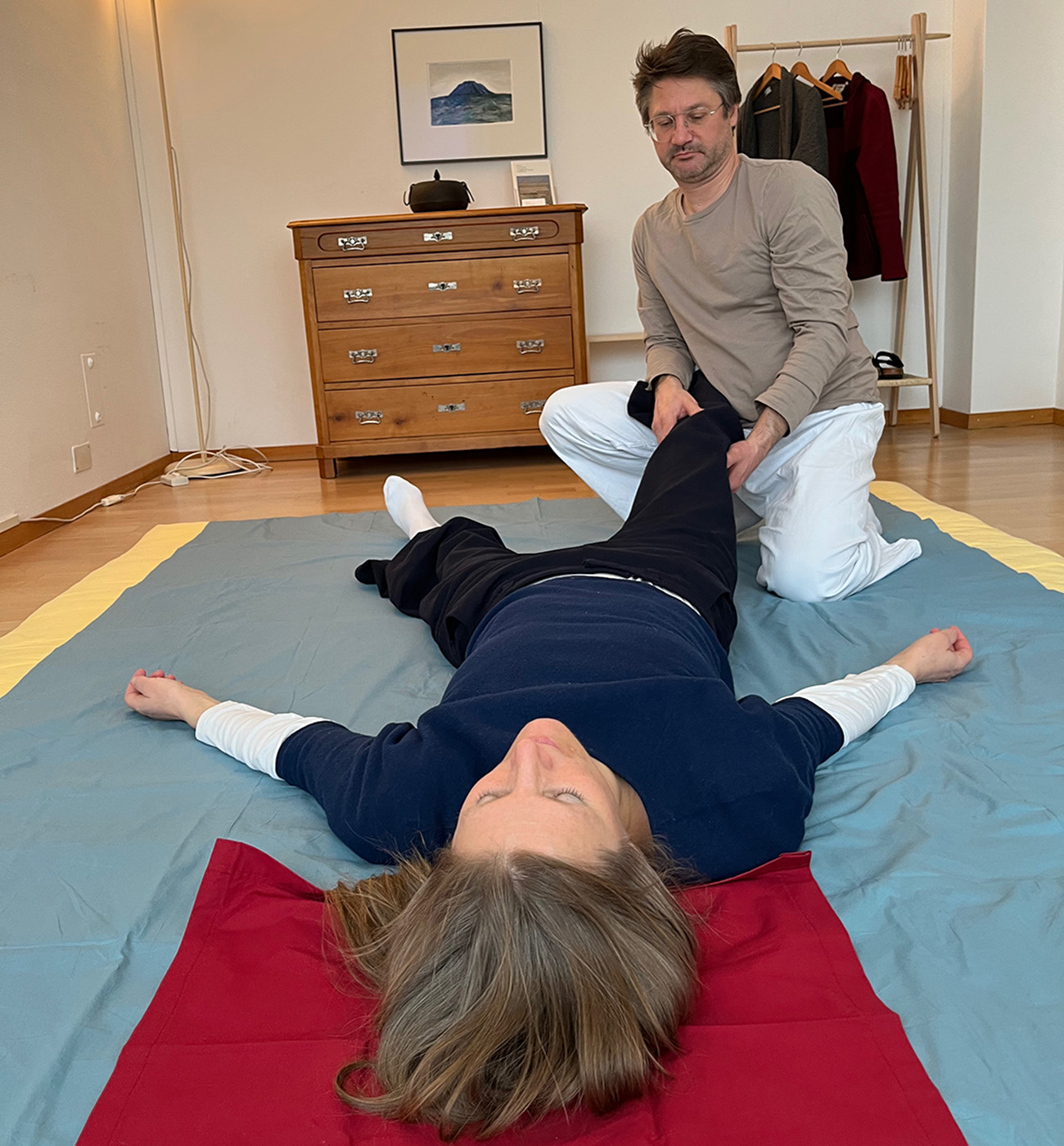 Die Behandlung findet auf einer dicken Matte, dem sogenannten Futon, am bekleideten Körper auf dem Boden statt. Mit speziellen Techniken übe ich Druck auf bestimmte Körperregionen aus, dehne das Gewebe oder bewege die Gelenke. Das ermöglicht dir, dich zu entspannen und dich vielleicht auf eine andere Weise wahrzunehmen, als du es gewohnt bist.